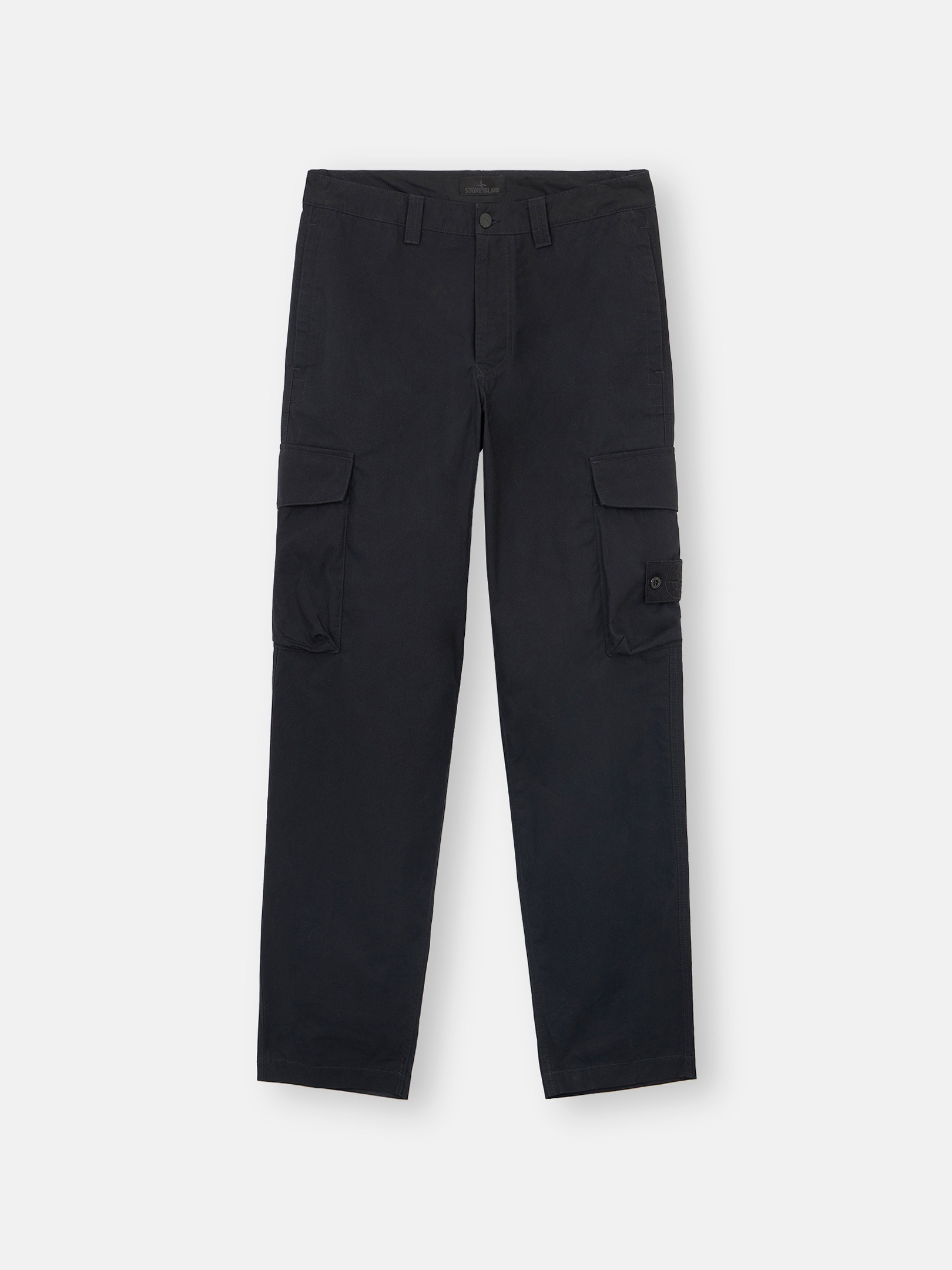 Cargo pants in a cotton canvas made from the finest premium cotton fibers that provide an excellent all-weather barrier that is windproof, breathable, and durable. FABRIC RESEARCH AND TREATMENT Ghost pieces are based on the concept of camouflage and are totally monochromatic. Even their Stone Island badges have been created in a special mono-color version to blend with the garment. Cargo pants made of a tightly woven cotton canvas fabric using the finest, long staple premium cotton fibers. The combination of dense weaving and swelling properties of the fiber when wet provides an excellent all-weather barrier with no need for extra coating or lamination. It is entirely natural, offering a unique level of comfort and texture. It is windproof, breathable and very durable. STYLE AND FIT Welt hand pockets. One pocket with flap and hidden snap fastening on back. Cargo bellows pocket on legs with slanting flap and hidden snap fastening; the left one features the Stone Island Ghost badge. Zipper and button fly. Regular fit. COMPOSITION AND CARE 100% Cotton