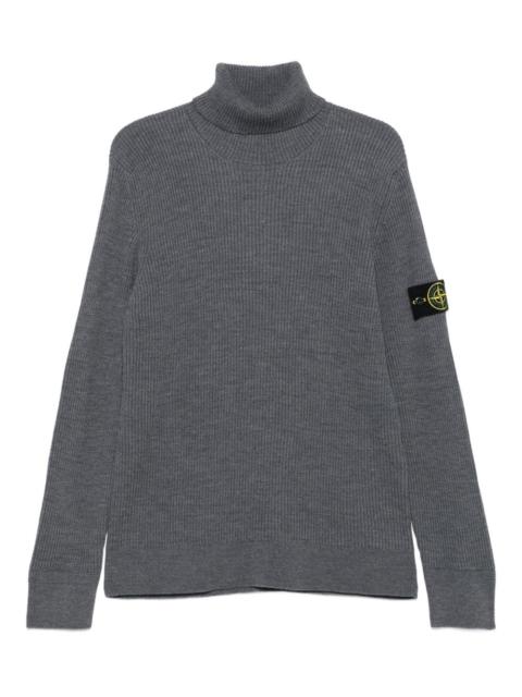 ribbed turtleneck sweater Highlights - Grey - Ribbed texture - Turtleneck neck - Long sleeves - Patch logo - Wool Imported Composition Virgin Wool 100% SIZE & FIT Model measurements Height 6 ft 0 in(1.84 m) Bust/Chest 37.79 in(96 cm) Hips 37 in(94 cm) Waist 31.49 in(80 cm) Washing instructions Hand Wash