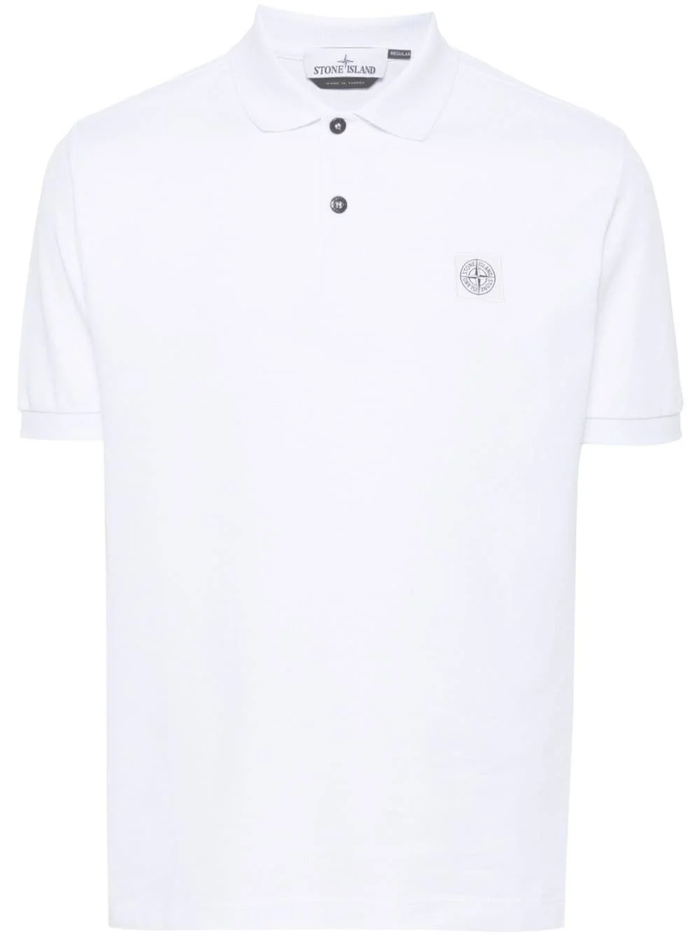 Compass-applique polo shirt Stone Island's compass logo takes inspiration from marine attire and the works by novelist Joseph Conrad. It was first introduced in 1982 and has since become a key part of the brand's DNA, shown at the chest of this classic cotton polo shirt. Highlights - Optical white - Cotton - Pique weave - Signature compass applique - Polo collar - Short sleeves - Short side slits - Straight hem - Front button placket Imported Composition Cotton 100% SIZE & FIT Model measurements Height 6 ft 2 in(1.88 m) Bust/Chest 35.03 in(89 cm) Hips 35.82 in(91 cm) Waist 27.95 in(71 cm) FittingInformation Designed for a regular fit, this polo shirt offers a comfortable loose fit throughout the body Made from a midweight non-stretch fabric, this piece offers minimal elasticity when worn Washing instructions Machine Wash