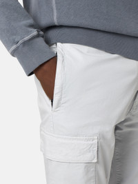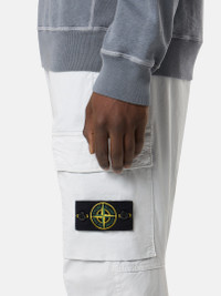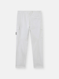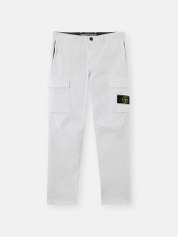 Cargo pants in Supima® stretch cotton twill with zipper hand pockets, snap pocket on the back, and patch snap pocket on the legs. Garment dyed. FABRIC RESEARCH AND TREATMENT Cargo pants in Supima® stretch cotton twill, made with mercerized Supima® cotton yarn, elasticated in the weft. Supima® - Superior Pima - is the guarantee certificate for the US origin of Pima cottons. This is the noblest species among cottons, due to the greater length, uniformity and strength of the fibers. Garment dyed. STYLE AND FIT Standing hand pockets with hidden zipper fastening. One back slit pocket with hidden snap fastening. Patch bellows pocket on legs with flap and hidden snap fastening; the left pocket features the Stone Island badge. Zipper and button fly. Regular tapered fit. COMPOSITION AND CARE 97% Cotton 3% Elastane / Spandex