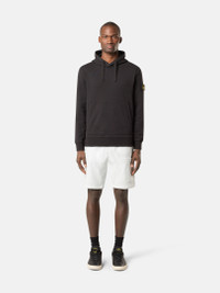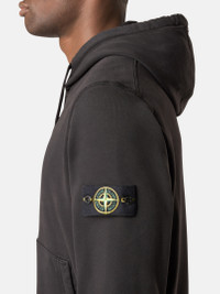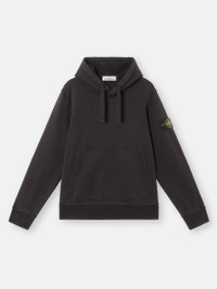 Sweatshirt in organic cotton fleece with contour drawstring hood, patch pockets, overlock seams, and lunette detail under back neckline. Garment dyed. FABRIC RESEARCH AND TREATMENT Hooded sweatshirt in organic cotton fleece. Garment dyed. STYLE AND FIT Hood with contour drawstring. Slanted patch pockets. Stone Island badge on the left sleeve. Overlock seams. Lunette with inner lining under back neckline. Ribbed cuffs and bottom band. Regular fit. COMPOSITION AND CARE 100% Cotton