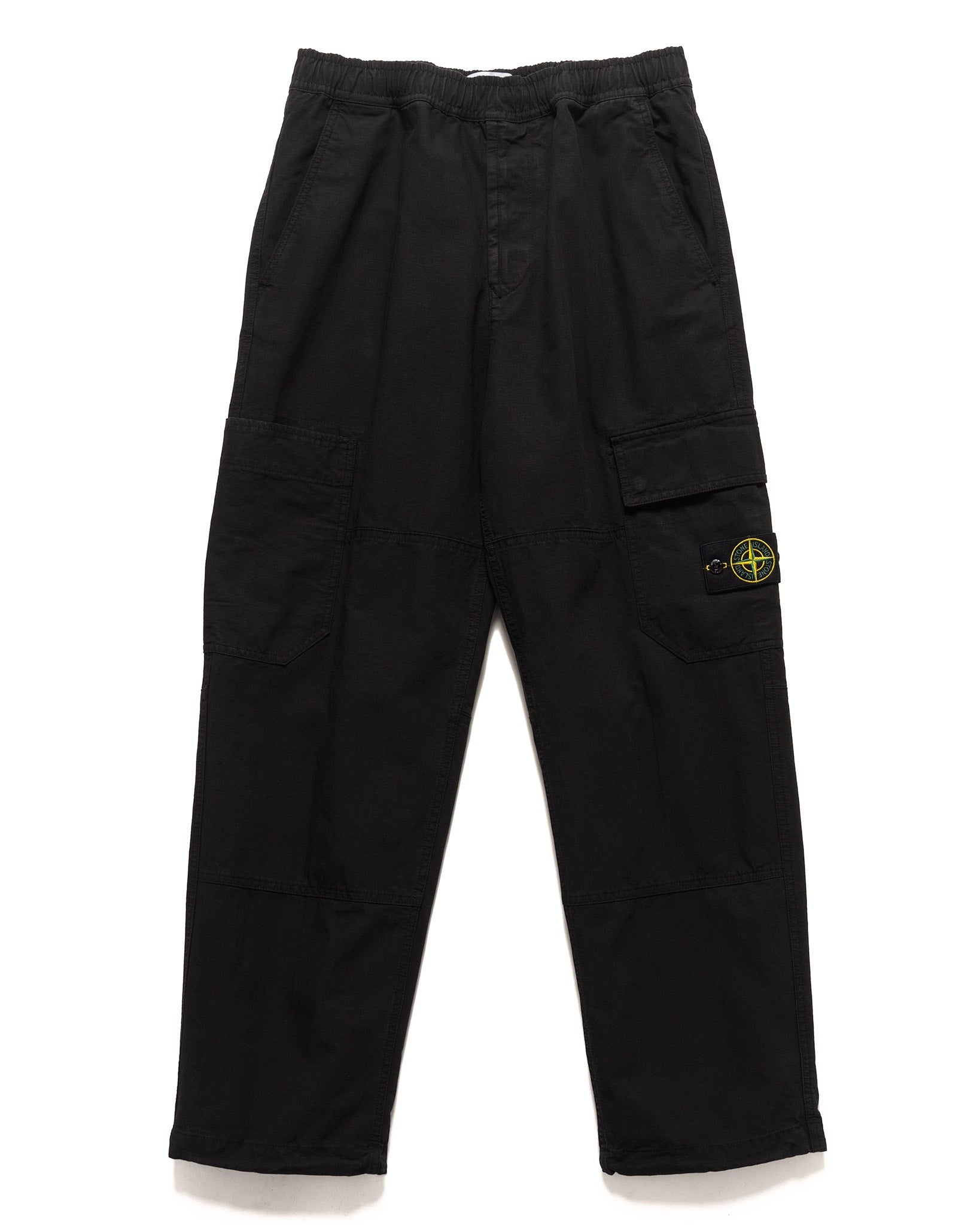 The Stone Island Cotton Ripstop Relaxed Cargo pants blend military and athletic elements to create a pant that sits between a fatigue pant and a sweat pant. Cut from a durable cotton ripstop fabric, they offer comfort, versatility and function through a relaxed fit, numerous pockets and an elasticated waistband with inner drawstring. The brands signature garment dye treatment gives the pants a unique finish and a softened look and feel. DETAILS - 811532212 - 100% cotton - Relaxed fit - Garment dyed - Slant hand pockets - Large cargo pocket with snap closure - Patch pocket at rear - Patch cargo pockets at leg - Elasticated waistband with inner drawstring - Zip fly - Removable Stone Island badge on left leg