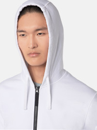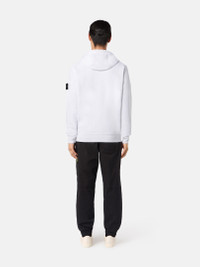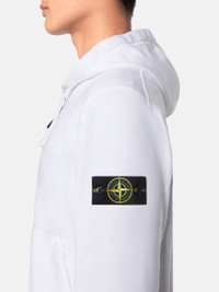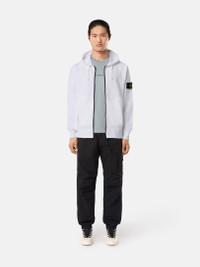 Sweatshirt in organic cotton fleece with a contour drawstring hood, hand pockets, overlock stitches, lunette detail, and zipper fastening. Garment dyed. FABRIC RESEARCH AND TREATMENT Full-zipper hooded sweatshirt in organic cotton fleece. Garment dyed. STYLE AND FIT Hood with contour drawstring. Slanted patch hand pockets. Stone Island badge on the left sleeve. Overlock stitches on hood, shoulders, armholes, and sides. Lunette with inner lining under back neckline. Ribbed cuffs and bottom band. Zipper fastening. Regular fit. COMPOSITION AND CARE 100% Cotton