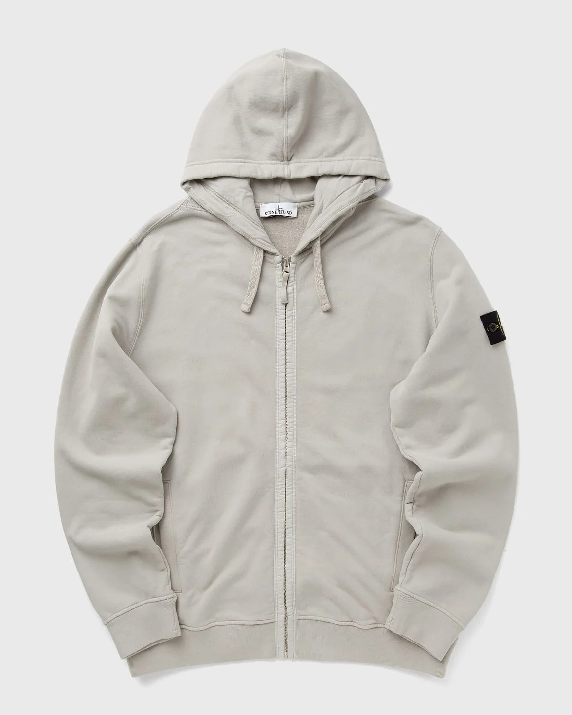 The Stone Island zip-up hoodie is made from brushed organic cotton fleece. The full-length front zip and hood offer practical everyday wearability. Two front pockets provide storage space, while the characteristic compass logo on the sleeve gives the look a subtle brand identity. - Piece dyed - Hood with drawstring and cotton jersey lining - Side pockets with vertical opening and ribbed cotton edge and internal cotton tape reinforcement - Two inside pockets - Ribbed side bands. Stone Island badge on the left sleeve - Elastic ribbed cuffs and hem - Zipper hidden under the cotton flap - Regular fit Article Number: K2S156100067S0A20.V0061 Gender: Men Color: PEARL GREY Material: 95% Cotton, 5% Spandex/elastane
