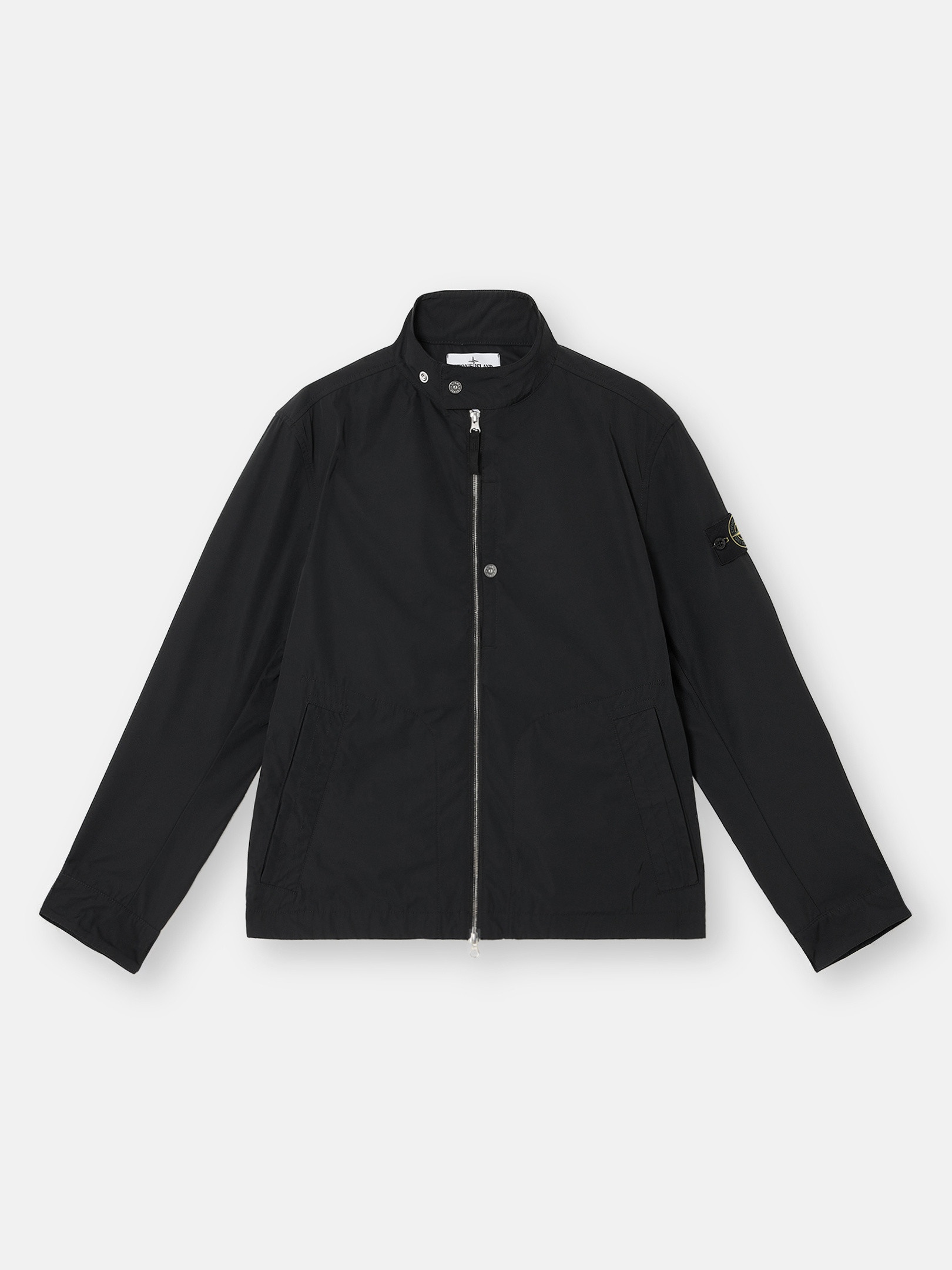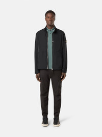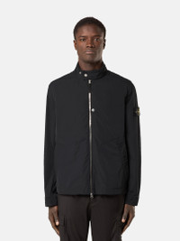 Blouson in a polyester micro twill whose spring-like structure lends a soft and comfortable texture to the fabric, featuring a standing collar with snap, back tightening straps, and two-way zipper. FABRIC RESEARCH AND TREATMENT Blouson made of a polyester micro twill featuring a spring-like, helical molecular structure. This fiber lends a soft and comfortable texture to the fabric with deep and rich colors. Treated with a PFC-free anti-drop agent. STYLE AND FIT Standing collar with snap fastening. One standing chest pocket with snap fastening. Slanted hand pockets with hidden fastening. Stone Island badge on the left sleeve. Tightening snap at cuffs. Tightening straps on sides of lower back. Two-way zipper fastening. COMPOSITION AND CARE 100% Polyester