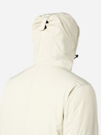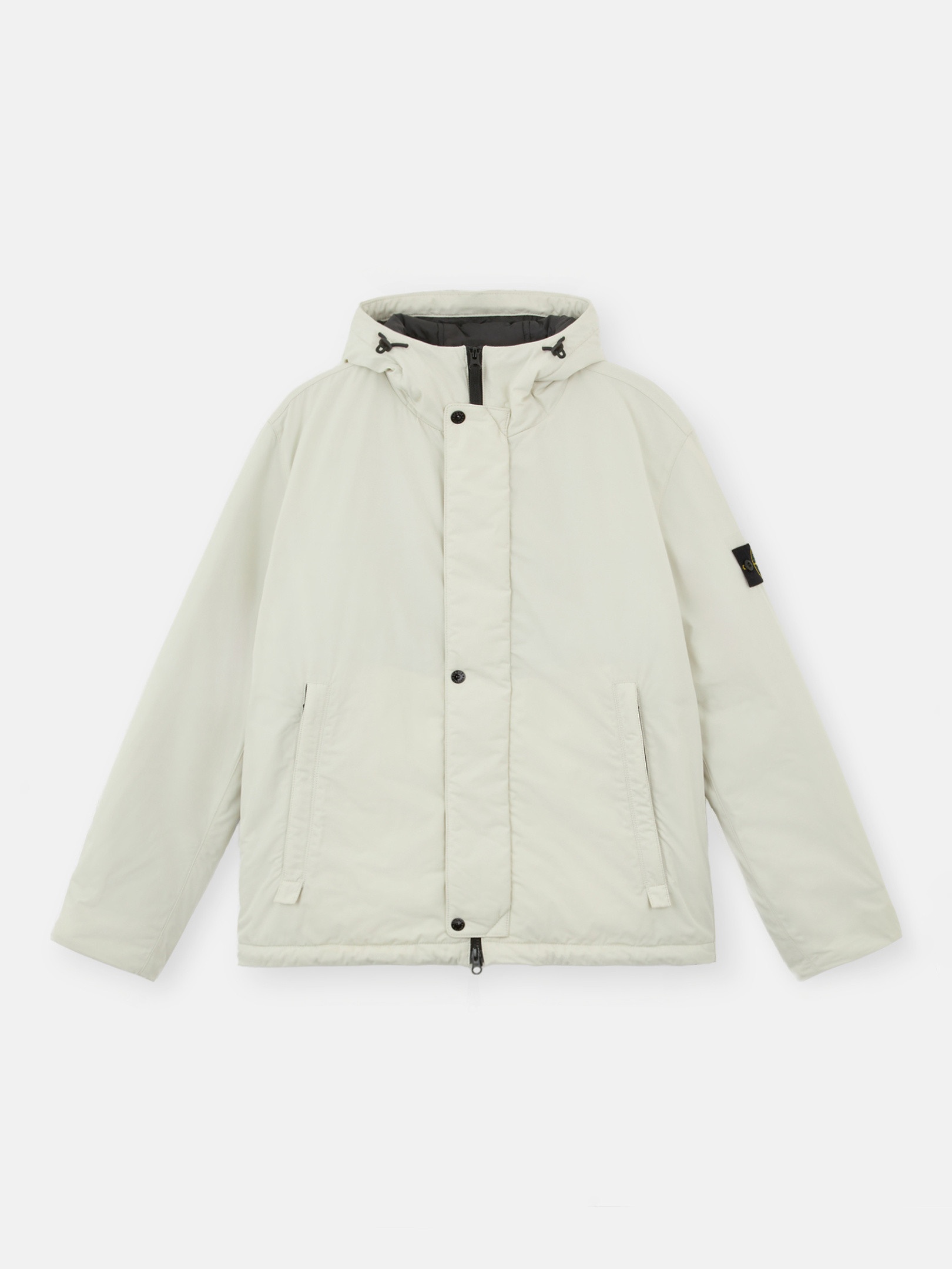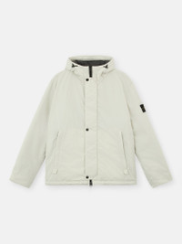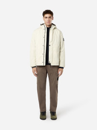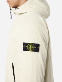 Jacket made from polyester micro twill with a spring-like structure for a soft, comfortable texture, padded with PrimaLoft® Gold P.U.R.E™ inner layer. FABRIC RESEARCH AND TREATMENT Hooded jacket made from polyester Micro Twill with a spring-like, helical molecular structure. This fiber lends a soft and comfortable texture to the fabric with deep and rich colors. Treated with a PFC-free anti-drop agent. The garment is padded with an inner layer of PrimaLoft® Gold P.U.R.E™, an exclusive 100% recycled blend of ultra-small diameter fibers resulting in superior thermal performance. It delivers the highest warmth-to-weight ratio of all synthetic insulations. STYLE AND FIT Hood with contour drawstring and standing Velcro strap on back. Two slanted hand pockets with zipper fastening. Stone Island badge on the left sleeve. Inner ribbed cuffs. Two-way zipper fastening, hidden under snap-fastened placket. COMPOSITION AND CARE External Fabric: 100% Polyester. Lining: 100% Polyester. Padding: 100% Polyester