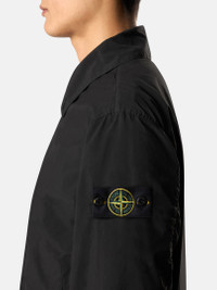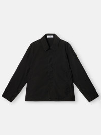 Jacket in a lightweight polyester canvas with a super-matt appearance and cotton-like hand, featuring button-up collar. Garment dyed at 130° under pressure with anti-drop. FABRIC RESEARCH AND TREATMENT Jacket made of a lightweight polyester canvas with a super-matt appearance and a cotton-like hand. The fabric compacts and takes on its final appearance through the garment-dyeing procedure at 130° under pressure. The addition of a special agent to the dye recipe makes the garment anti-drop. STYLE AND FIT The collar can be buttoned up. Two slanted hand pockets with snap fastening. Stone Island badge on the left sleeve. Hidden elasticated cuff. Metal ventilation eyelets on the sides. Hidden two-way zipper fastening under double placket with button fastening. COMPOSITION AND CARE Garment: 100% Polyester. Garment Details: 70% Polyester 30% Polyamide / Nylon