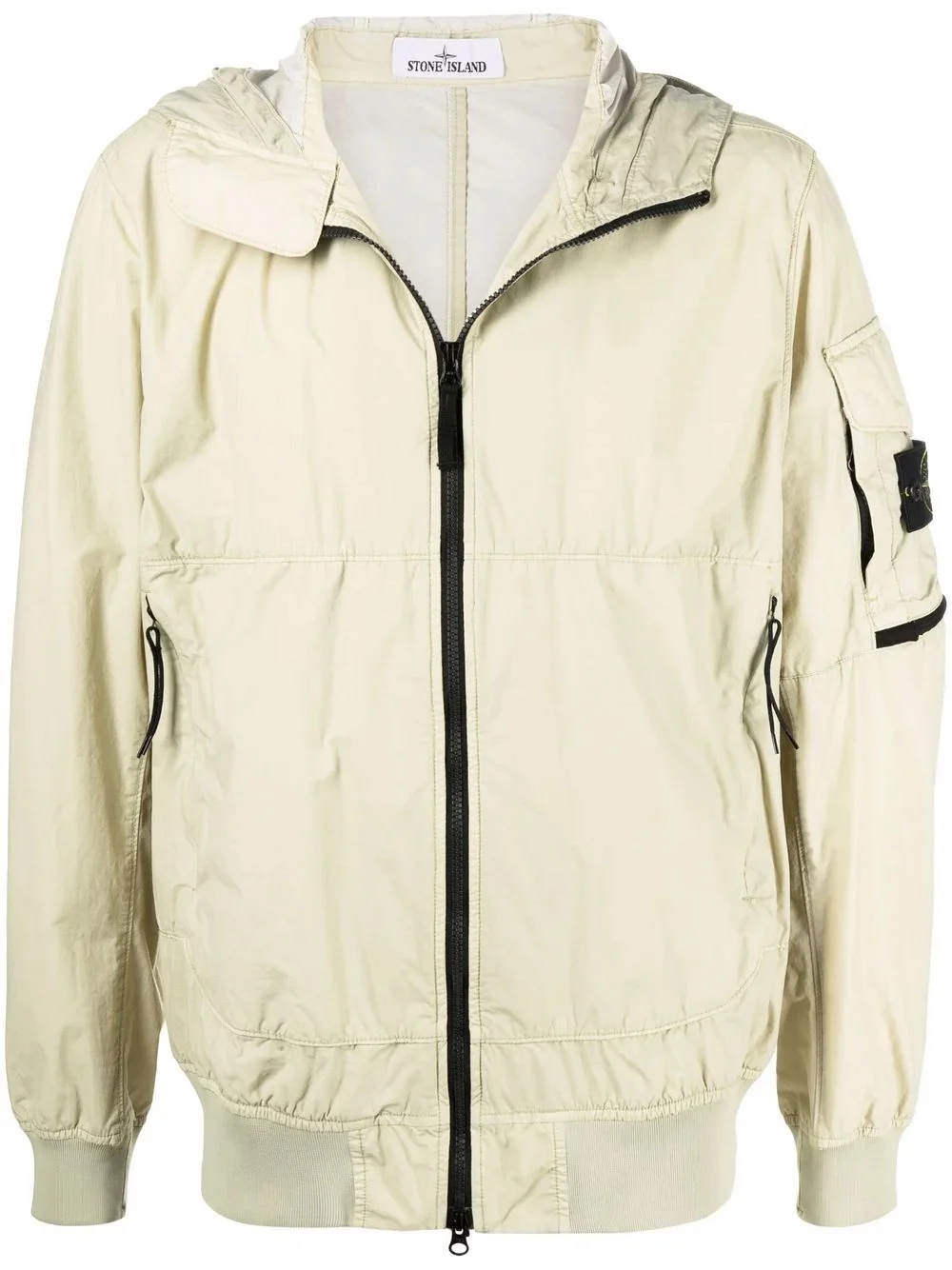 Compass badge lightweight hooded jacket With a lightweight construction in a light green hue, this hooded jacket from Stone Island is punctuated with the brand's signature Compass badge at the left sleeve for a recognisable look. Imported Composition Outer: Polyurethane Resin 100%, Polyamide 100% SIZE & FIT Model measurements Height 6 ft 2 in(1.89 m) Bust/Chest 37.79 in(96 cm) Hips 37 in(94 cm) Waist 29.92 in(76 cm) Measurement CHEST 51.96 in(132 cm) SLEEVE LENGTH 37.79 in(96 cm) Shoulder Width 21.25 in(54 cm) FittingInformation Designed to be unstructured, offering a loose fit throughout Made from a lightweight non-stretch fabric Washing instructions Machine Wash