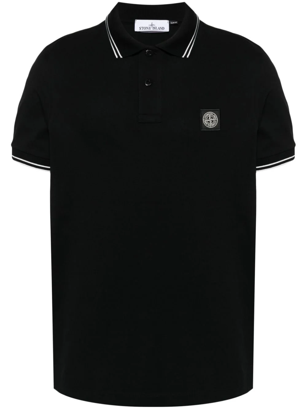 Compass-badge pique polo shirt Highlights - Black - Stretch-cotton - Pique weave - Signature compass motif - Polo collar - Front button placket - Short sleeves - Ribbed cuffs - Straight hem Made in Italy Composition Cotton 95%, Elastane 5% SIZE & FIT Model measurements Height 6 ft 0 in(1.84 m) Bust/Chest 35.82 in(91 cm) Hips 37 in(94 cm) Waist 28.34 in(72 cm) Measurement CHEST 38.97 in(99 cm) FittingInformation Designed for a slim fit, this polo shirt offers a comfortable fit that sits just away from the body Made from a midweight stretch fabric, this piece offers elasticity and flexibility when worn Washing instructions Machine Wash