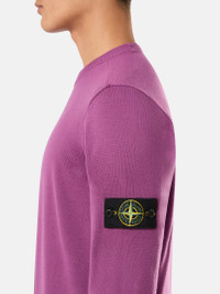 Stocking stitch knit crewneck sweater made from RWS-certified wool, featuring a ribbed collar, cuffs, and bottom band. 14 gauge. FABRIC RESEARCH AND TREATMENT Crewneck knit in RWS-certified pure light wool. Stocking stitch. 14 gauge. The Responsible Wool Standard (RWS) describes and certifies animal welfare and land management practices in wool production and tracks the certified material from farm to final product. STYLE AND FIT Ribbed collar. Stone Island badge on the left sleeve. Ribbed cuffs and bottom band. Regular fit. COMPOSITION AND CARE 100% Virgin Wool
