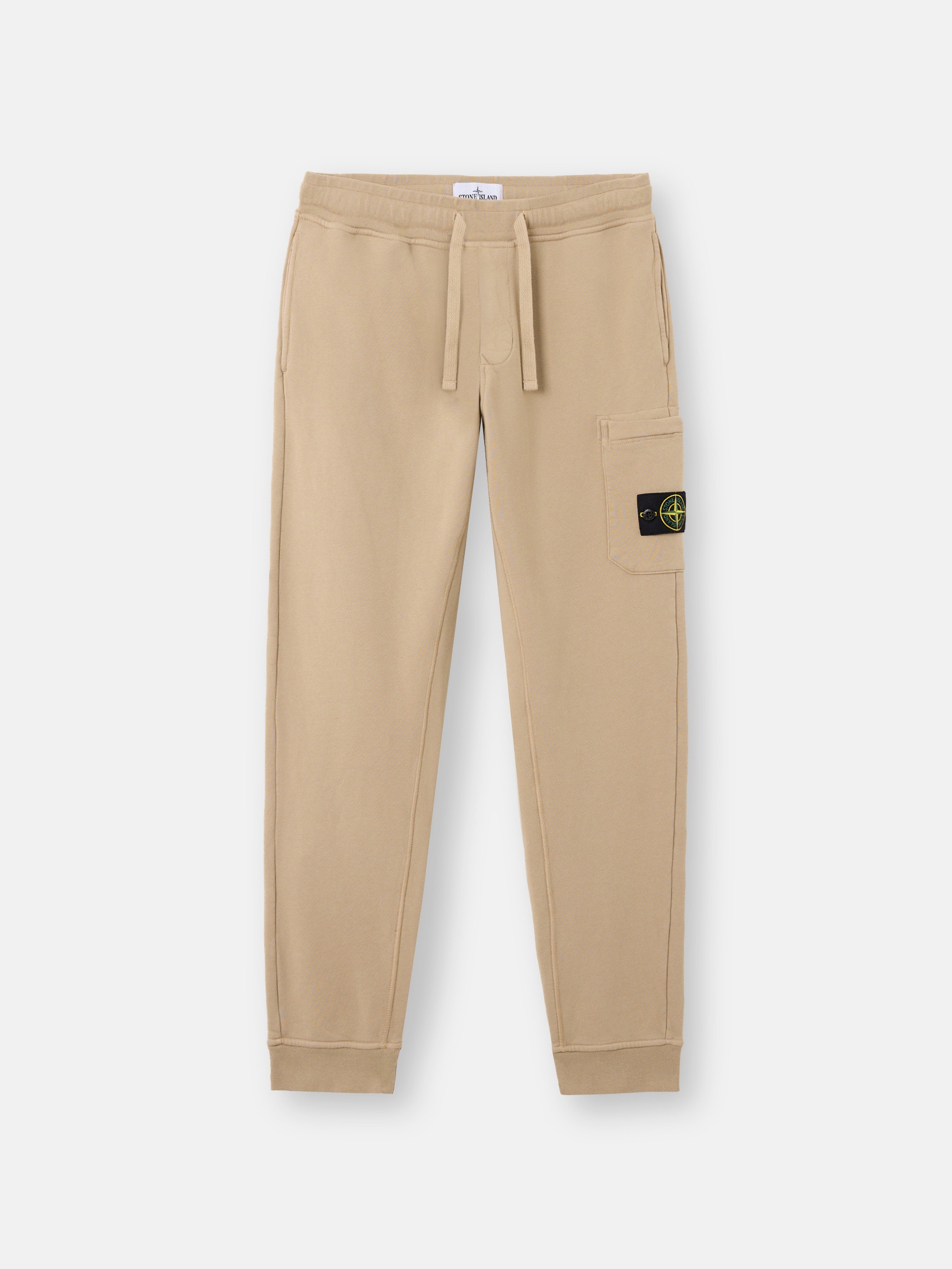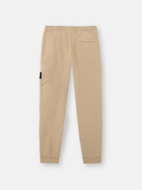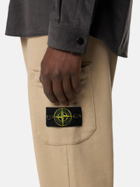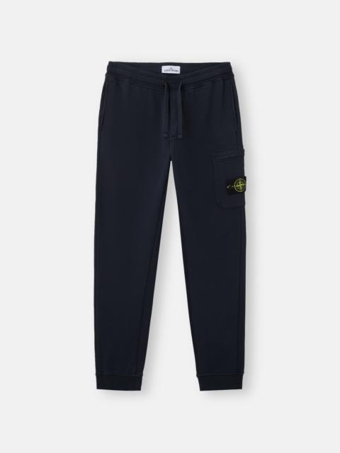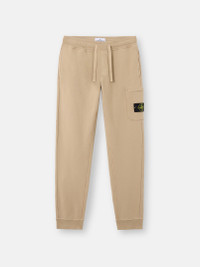 Sweatpants in organic cotton fleece with hand pockets, snap slit pocket on the back, zipper patch pocket on the left leg, and elasticated drawstring waistband. Garment dyed. FABRIC RESEARCH AND TREATMENT Sweatpants in organic cotton fleece. Garment dyed. STYLE AND FIT Welt hand pockets. One slit pocket with hidden snap fastening on the back. Patch pocket with hidden zipper fastening and the Stone Island badge on the left leg. Overlock seams on inner legs. Ribbed cuffs at bottom. Elasticated waistband with outer drawstring. Slim fit. COMPOSITION AND CARE External Fabric: 100% Cotton. Trim: 100% Cotton