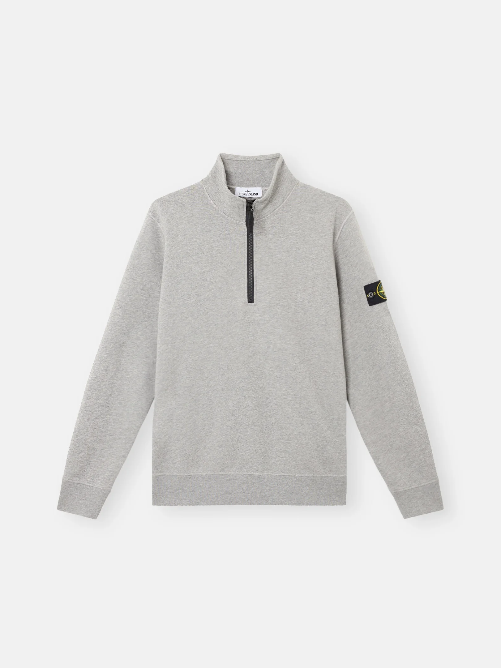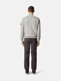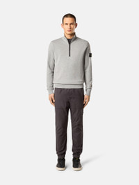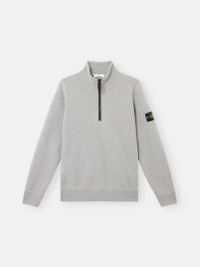 Sweatshirt in organic cotton fleece with zipper-fastened standing collar, featuring finely ribbed lining, patch pockets, and overlock seams. Garment dyed. FABRIC RESEARCH AND TREATMENT Half-zipper sweatshirt in organic cotton fleece. Garment dyed. STYLE AND FIT Standing collar with finely ribbed lining and zipper fastening. Slanted patch pockets. Stone Island badge on the left sleeve. Overlock seams. Ribbed cuffs and bottom band. Regular fit. COMPOSITION AND CARE External Fabric: 100% Cotton. Ribbing: 97% Cotton 3% Elastane / Spandex