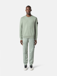 Crewneck sweatshirt in organic cotton fleece with ribbed neckline, overlock seams, and lunette detail under the back neckline. Garment dyed. FABRIC RESEARCH AND TREATMENT Crewneck sweatshirt in organic cotton fleece. Garment dyed. STYLE AND FIT Ribbed neckline. Stone Island badge on the left sleeve. Overlock seams. Lunette with inner lining under back neckline. Ribbed cuffs and bottom band. Regular fit. COMPOSITION AND CARE 100% Cotton