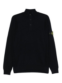 high-neck button sweater Highlights - Blue - High neck - Button fastening - Long sleeves - Logo patch Imported Composition Virgin Wool 88%, Polyester 12% SIZE & FIT Model measurements Height 6 ft 1 in(1.85 m) Bust/Chest 35.82 in(91 cm) Hips 37.79 in(96 cm) Waist 29.13 in(74 cm) Washing instructions Hand Wash