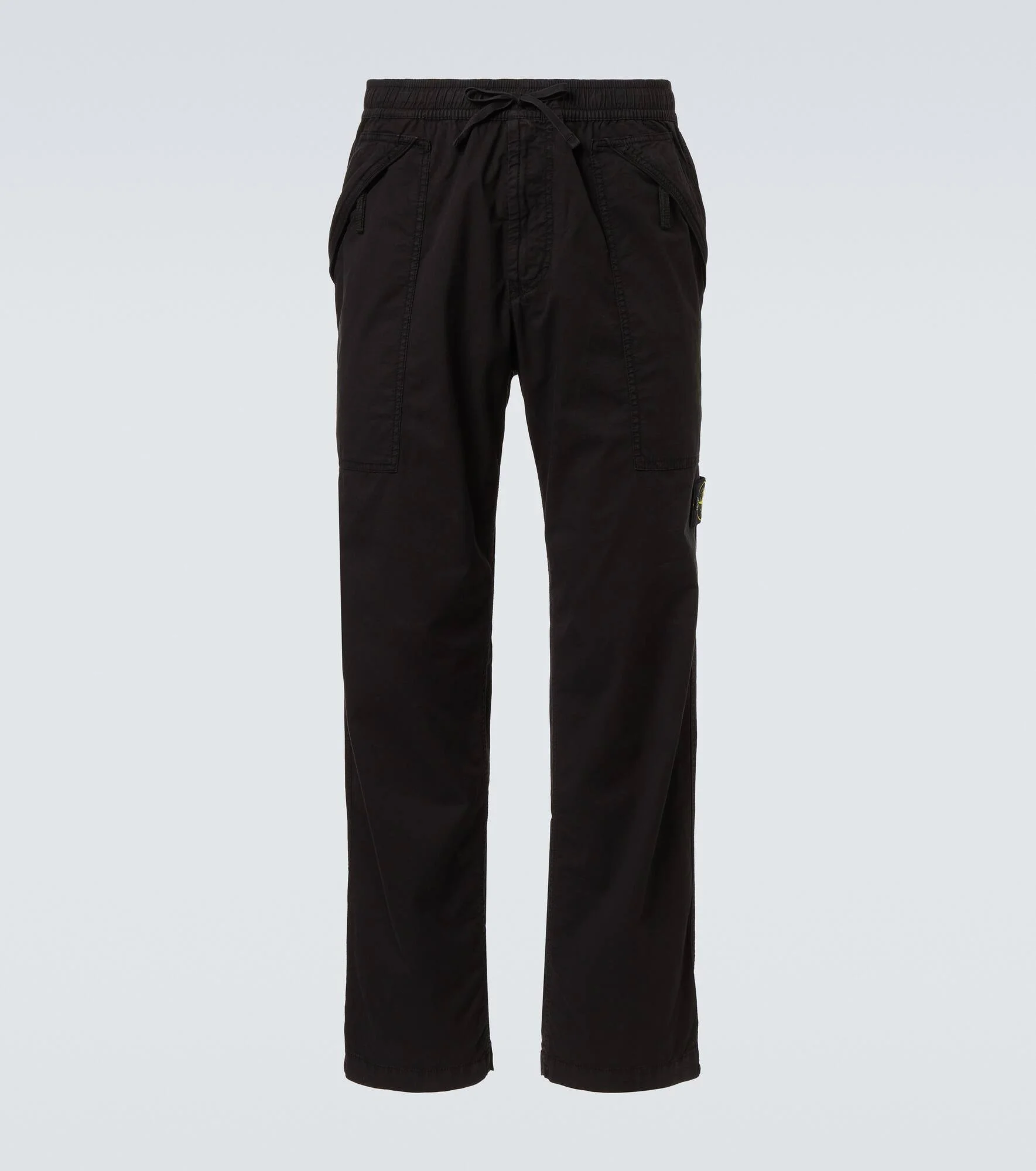Stay comfortable and polished in these cotton-blend twill pants from Stone Island. This piece features the Compass badge on the sleeve, a symbol of the brand's love for the sea and dedication to innovation. Product Details - Material: 97% cotton, 3% elastane - Care instructions: machine wash at 30 degrees - Made in Tunisia - Designer color name: Black - Item color: black - Closure: zipped - Elasticated waistband - Pockets: zipped pockets - Item number: P01064040 Size & Fit - True to size - Elasticated waist - Adjustable at the waist - Non-stretchy fabric - Straight leg - The model in the picture is 185cm-6'1" and wearing a size 32