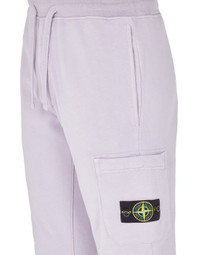 FABRIC RESEARCH AND TREATMENT Cargo sweatpants in cotton fleece. Garment dyed. STYLE Slim fit. Hand pockets on seam. One back pocket with hidden snap fastening. Patch pocket on the left leg, featuring the Stone Island badge; hidden zipper fastening. Elasticized waist with outer drawstring. Ribbed leg bottoms. Zipper fly. DETAILS Width at end: 13.0 cm COMPOSITION External fabric: 100% Cotton TRIM: 100% Cotton