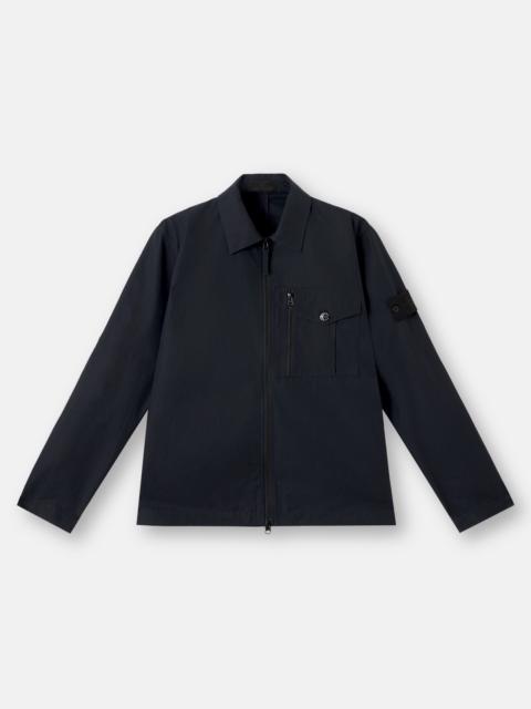 Overshirt in a cotton canvas made from the finest premium cotton fibers that provide a natural weather barrier that is windproof, breathable, and durable. FABRIC RESEARCH AND TREATMENT Ghost pieces, derived from the concept of camouflage, are totally monochromatic. Even the Stone Island badge is created in a special monocolor version to blend in with the garment. Overshirt made of a tightly woven cotton canvas fabric using the finest, long-staple premium organic cotton fibers. The combination of dense weaving and swelling properties of the fiber when wet provides an excellent weather barrier with no need of extra coating or lamination. It is entirely natural, offering a unique level of comfort and touch. It is windproof, breathable and very durable. STYLE AND FIT Two chest pockets on left side; one bellows pocket with flap and button fastening; the other with vertical entrance and zipper fastening. On-seam hand pockets. Inner pocket with top entrance. Stone Island Ghost badge on the left sleeve. Tightening snap at cuffs. Two-way fastening. Regular fit. COMPOSITION AND CARE 100% Cotton
