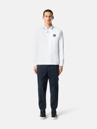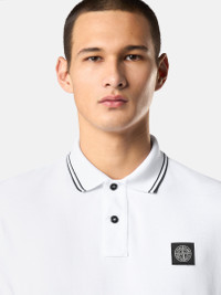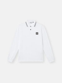 Long-sleeve polo shirt in organic cotton and elastane pique with two-button fastening and contrast-colored stripes on the collar and Compass logo on chest. FABRIC RESEARCH AND TREATMENT Long-sleeve polo shirt in 95% organic cotton / 5% elastane pique. STYLE AND FIT Ribbed collar with two parallel contrast-colored stripes, two-button fastening. Stone Island Compass logo patch on chest. Bottom slit on sides. Ribbed cuffs. Slim fit. COMPOSITION AND CARE 95% Cotton 5% Elastane / Spandex