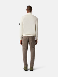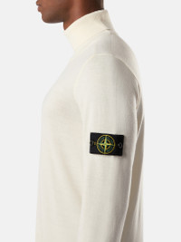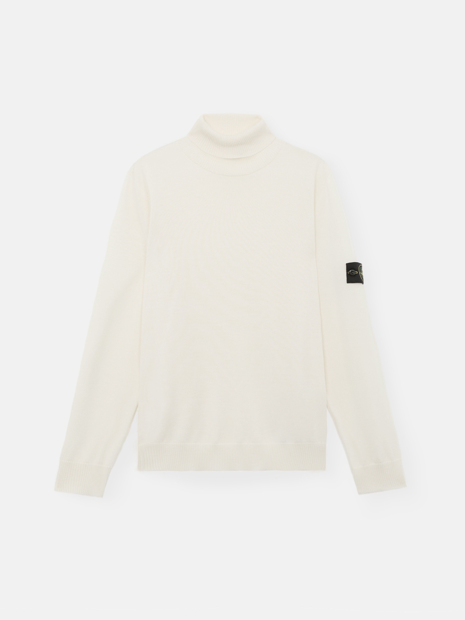 Knit turtleneck sweater made from RWS-certified pure light wool in stocking stitch featuring a ribbed collar, cuffs, and bottom band. 14 gauge. FABRIC RESEARCH AND TREATMENT Turtle neck knit in RWS-certified pure light wool. Stocking stitch. 14 gauge. The Responsible Wool Standard (RWS) describes and certifies animal welfare and land management practices in wool production and tracks the certified material from farm to final product. STYLE AND FIT Ribbed collar. Stone Island badge on the left sleeve. Ribbed cuffs and bottom band. Regular fit. COMPOSITION AND CARE 100% Virgin Wool