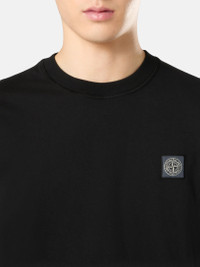 Short-sleeve T-shirt made from organic cotton jersey, featuring Compass patch. Garment dyeing and treatment create a three-dimensional appearance. FABRIC RESEARCH AND TREATMENT Short-sleeve T-shirt in organic cotton jersey. Garment dyed and treated with the 'FISSATO' effect, a water-soluble resin treatment process and garment-dyeing technique creating a three-dimensional appearance. STYLE AND FIT Ribbed neckline. Stone Island Compass logo patch on chest. Overlock seams. Slim fit. COMPOSITION AND CARE 100% Cotton
