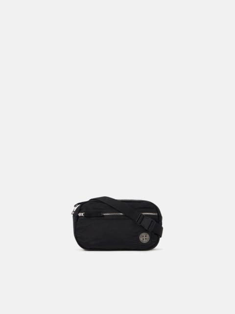 Fanny pack in Nylon Metal made from ECONYL® regenerated yarns with polyurethane coating, featuring a front zipper pocket, nylon ripstop lining, and a Compass logo patch. FABRIC RESEARCH AND TREATMENT Fanny pack in Stone Island's iridescent Nylon Metal fabric with polyurethane coating. The evolution of this iconic fabric sees the use of ECONYL® regenerated yarns: the life-ended nylon, pre- and post-consumer, is recycled with a complex depolymerization process to create this fiber that features the same intrinsic characteristics of nylon from fossil raw material. STYLE AND FIT Front pocket with horizontal zipper and Stone Island Compass logo patch. Nylon ripstop lining. Top zipper fastening. Adjustable nylon tape belt with buckle fastening. COMPOSITION AND CARE External Fabric: 100% Polyamide / Nylon. Coating: 100% Polyurethanic Resin. Lining: 100% Polyamide / Nylon
