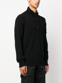 Compass-patch buttoned-up jumper A brand mainstay since 1982, the Compass motif is featured across Stone Island's collections. Elevating even the most casual pieces, the nautical-inspired element can be spotted over the sleeve of this jumper in its detachable-patch iteration. Highlights - Black - Wool blend - Signature compass motif - Knitted construction - High neck - Front button fastening - Long sleeves - Elasticated cuffs - Elasticated hem Imported Composition Wool 80%, Polyamide 20% SIZE & FIT Model measurements Height 6 ft 2 in(1.87 m) Bust/Chest 38.18 in(97 cm) Hips 36.61 in(93 cm) Waist 29.13 in(74 cm) FittingInformation Designed for a relaxed fit, this piece allows for comfort and movement when worn Made with a midweight knit, this piece offers some stretch This piece fits true to size – take your usual size