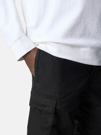 Cargo Bermuda shorts in light stretch cotton tela, featuring hand pockets with concealed zipper, cargo flap pockets, and a back snap pocket. Garment dyed. FABRIC RESEARCH AND TREATMENT Cargo Bermuda shorts in light stretch cotton tela. Garment dyed. STYLE AND FIT Vertical hand pockets with concealed zipper. Cargo bellows pockets with flap and concealed double snap. Stone Island badge on left cargo pocket. Back pocket with fixed flap and concealed snap. Reinforced inner waistband with contrast lining. Zipper fly and button fastening. Regular fit. COMPOSITION AND CARE External Fabric: 97% Cotton 3% Elastane / Spandex Pocket Bag: 100% Cotton