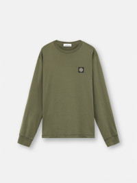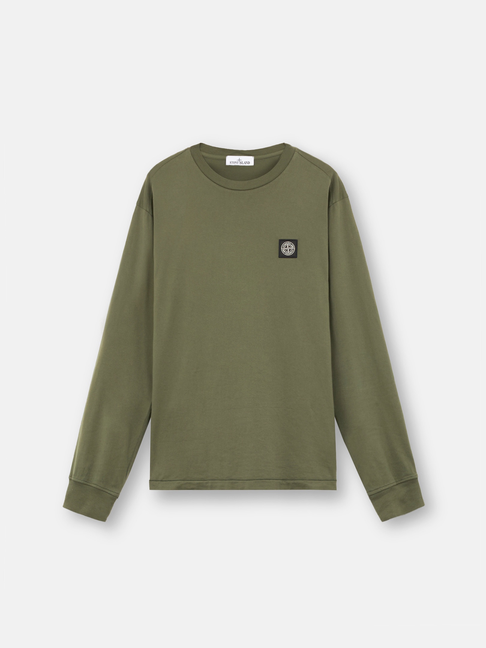 T-shirt in cotton jersey featuring a Stone Island Compass logo patch on the chest, ribbed details, and chain overstitching. Garment dyed. FABRIC RESEARCH AND TREATMENT Long-sleeve T-shirt in cotton jersey. Garment dyed. STYLE AND FIT Ribbed neckline. Stone Island Compass logo patch on chest. Thinly ribbed cuffs. Chain overstitching on the bottom hem. COMPOSITION AND CARE 100% Cotton