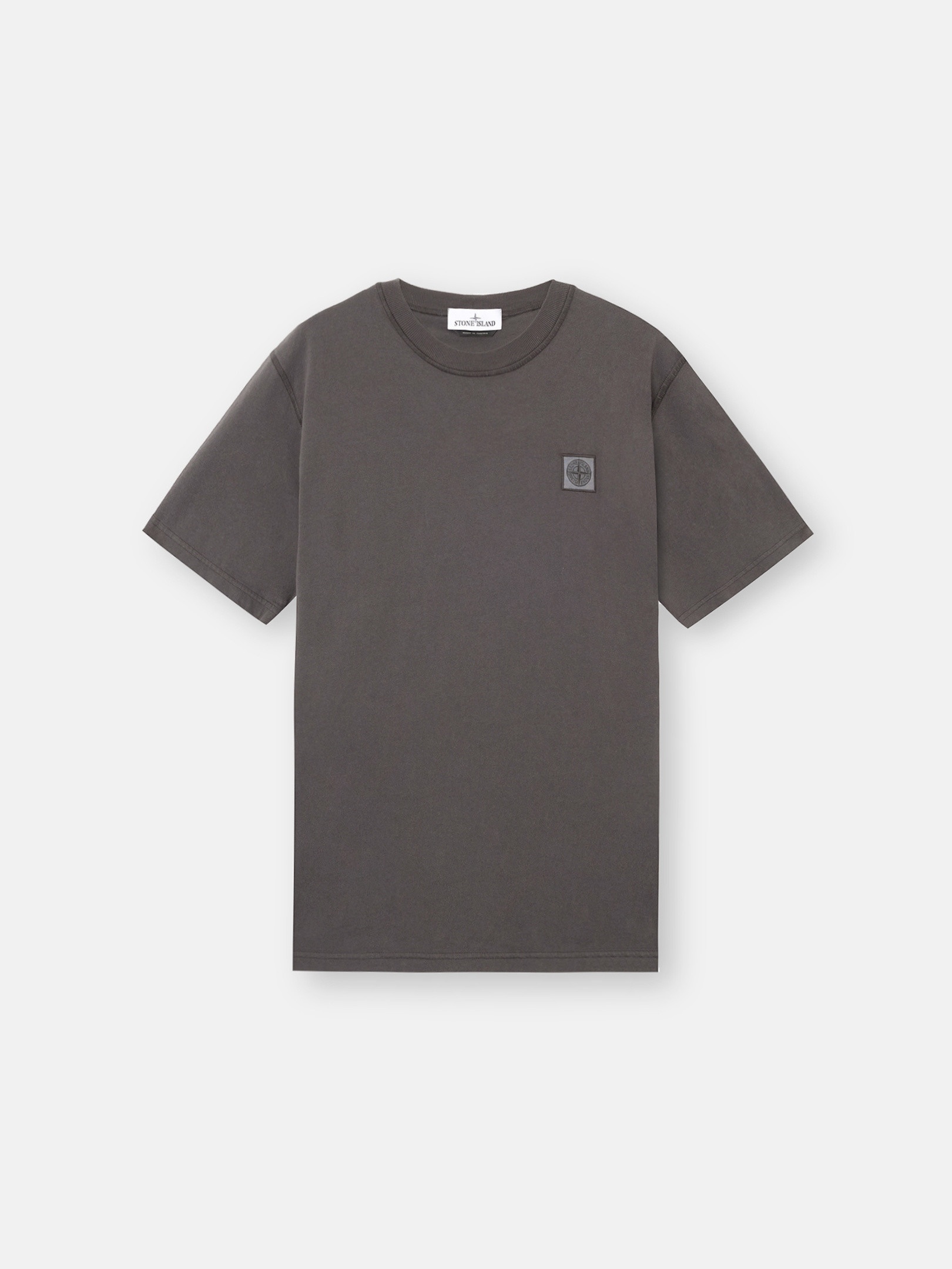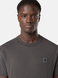 Short-sleeve T-shirt made from organic cotton jersey, featuring Compass patch. Garment dyeing and treatment create a three-dimensional appearance. FABRIC RESEARCH AND TREATMENT Short-sleeve T-shirt in organic cotton jersey. Garment dyed and treated with the 'FISSATO' effect, a water-soluble resin treatment process and garment-dyeing technique creating a three-dimensional appearance. STYLE AND FIT Ribbed neckline. Stone Island Compass logo patch on chest. Overlock seams. Slim fit. COMPOSITION AND CARE 100% Cotton