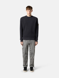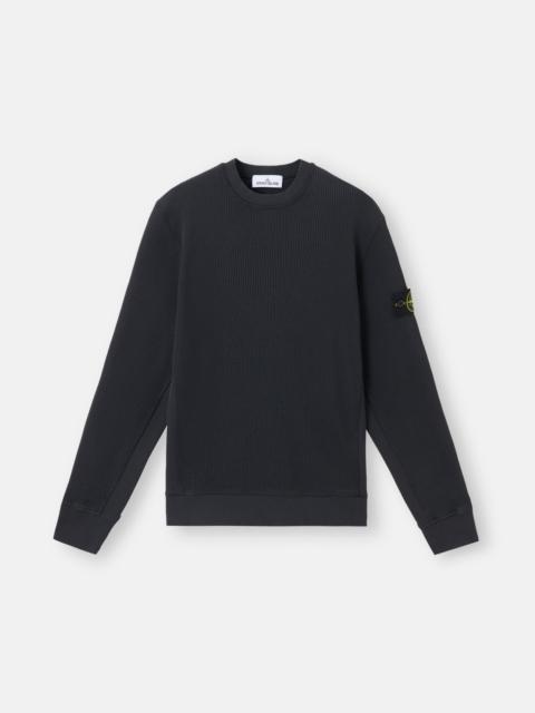 Crewneck sweatshirt in organic cotton waffle fleece with overlock seams and ribbed inlay details on the sides and under the sleeves. FABRIC RESEARCH AND TREATMENT Crewneck sweatshirt in organic cotton waffle fleece. STYLE AND FIT Ribbed neckline. Stone Island badge on the left sleeve. Overlock seams. Ribbed inlay on the sides and under the sleeves. Ribbed cuffs and bottom band. Regular fit. COMPOSITION AND CARE Garment: 100% Cotton. Ribbing: 95% Cotton 5% Elastane / Spandex