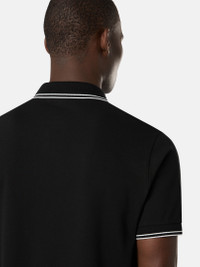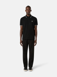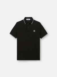 Short-sleeve polo shirt in organic cotton and elastane pique with two buttons, Compass logo on chest, and contrast-colored stripes on collar and sleeve edges. FABRIC RESEARCH AND TREATMENT Short-sleeve polo shirt in 95% organic cotton / 5% elastane pique. STYLE AND FIT Ribbed collar with two parallel contrast-colored stripes and two-button fastening. Stone Island Compass logo patch on chest. Ribbed sleeve edge with parallel contrast-colored stripes. Bottom slit on sides. Slim fit. COMPOSITION AND CARE 95% Cotton 5% Elastane / Spandex
