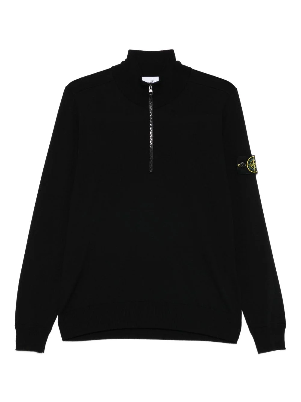 half-zip wool sweater Highlights - Black - Half-zip fastening - Long sleeves - Ribbed cuffs - High neck - Logo patch Imported Composition Virgin Wool 100% SIZE & FIT Model measurements Height 6 ft 2 in(1.88 m) Bust/Chest 37.4 in(95 cm) Hips 38.58 in(98 cm) Waist 31.1 in(79 cm) Washing instructions Hand Wash