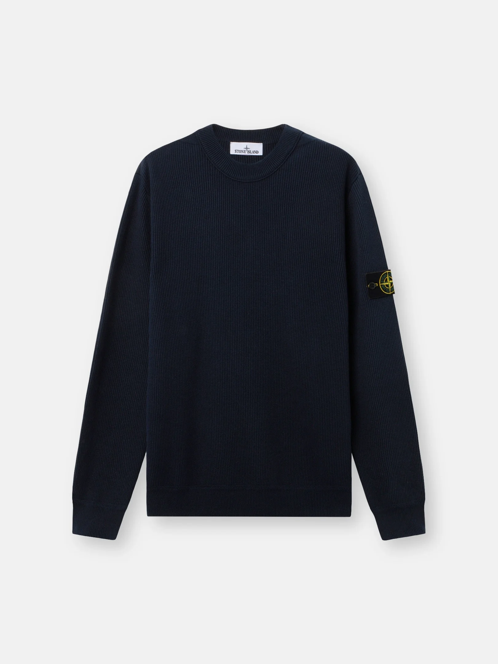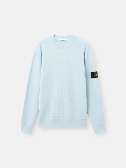 Crewneck sweater in ribbed soft organic cotton, featuring finer ribbing at the cuffs and bottom band. Gauge 12. FABRIC RESEARCH AND TREATMENT Knit crewneck sweater in ribbed soft organic cotton. Gauge 12. STYLE AND FIT Ribbed neckline. Stone Island badge on left sleeve. Cuffs and bottom band in finer ribbing. Regular fit. COMPOSITION AND CARE 100% Cotton
