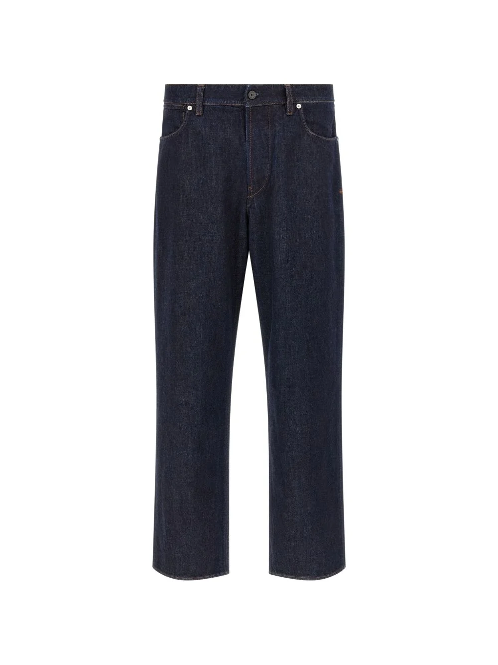 contrast-stitching logo-badge jeans Highlights - Indigo blue - Garment-dyed - Contrast stitching - Five pockets - Logo badge - Straight leg Imported Composition Cotton 100% Washing instructions Read Manufacturer Guidelines