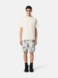 Cargo Bermuda shorts made from stretch cotton ripstop with a two-tone camouflage pigment print taken from scanning Stone Island garments and other graphic elements. Overdyed with specific recipes. FABRIC RESEARCH AND TREATMENT Cargo Bermuda shorts made of a stretch cotton ripstop of military origin, with custom-made checks for Stone Island. The two-tone camouflage pigment print is obtained with a pattern taken from the scanning of Stone Island garments and other graphic elements, for a three-dimensional effect. The garment is overdyed with specific recipes. STYLE AND FIT Standing hand pockets with flap and snap fastening. Two back pockets with flap and snap fastening. Bellows pocket on legs with flap and three-snap fastening; the left one features the Stone Island badge. Inner drawstring in waistband. Snap and button fly. Comfort fit. COMPOSITION AND CARE External Fabric: 95% Cotton 5% Elastane / Spandex. Pocket Bag: 100% Cotton