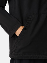 Hooded overshirt in stretch Supima® cotton twill, featuring angled snap pockets and elasticated cuffs, with two-way zipper. Garment dyed. FABRIC RESEARCH AND TREATMENT Hooded overshirt in stretch Supima® cotton twill, made with mercerized Supima® cotton yarn, elasticated in the weft. Supima® - Superior Pima - is the guarantee certificate for the US origin of Pima cottons. This is the noblest species among cottons, due to the greater length, uniformity and strength of the fibers. Garment dyed. STYLE AND FIT Hood with drawcord. Hand pockets with angled opening and snap. Stone Island badge on left sleeve. Elasticated cuffs. Two-way zipper fastening. Regular fit. COMPOSITION AND CARE 97% Cotton 3% Elastane / Spandex