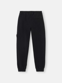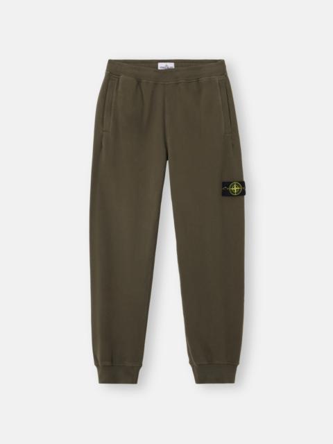 Sweatpants in brushed organic cotton fleece featuring multiple pockets, ribbed cuffs and an elastic waistband with inner drawstring. Garment dyed. FABRIC RESEARCH AND TREATMENT Sweatpants in brushed organic cotton fleece. Garment dyed. STYLE AND FIT Standing hand pockets. One back pocket with snap under fixed band. Stone Island badge on left leg. Elasticated ribbed cuffs. Elastic waistband with inner drawstring. Regular fit. COMPOSITION AND CARE External Fabric: 100% Cotton. Ribbing: 99% Cotton 1% Elastane / Spandex
