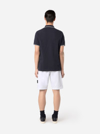 Cargo Bermuda shorts in organic cotton fleece with hand pockets, snap slit pocket on the back, patch pocket on the left leg, and elasticated drawstring waistband. Garment dyed. FABRIC RESEARCH AND TREATMENT Cargo Bermuda shorts in organic cotton fleece. Garment dyed. STYLE AND FIT Welt hand pockets. One slit pocket with hidden snap fastening on the back. Patch pocket with hidden zipper fastening and the Stone Island badge on the left leg. Overlock seams on inner legs. Elasticated waistband with outer drawstring. Regular fit. COMPOSITION AND CARE External Fabric: 100% Cotton. Trim: 100% Cotton