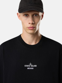 Short-sleeve T-shirt in organic cotton jersey with the seasonal ‘Archivio’ print featuring the 19154703_Formula Steel jacket from the Fall_Winter ‘996-‘997 collection. Garment dyed. FABRIC RESEARCH AND TREATMENT Archivio is a project that illustrates Stone Island's textile experimentation and innovation. This method of research has been known as a lodestar in the fashion and design world for nearly forty years. Every season, a new ‘Archivio’ print tells the story of a fabric that has become a symbol of this passionate research. A window on the tag attached to the garment holds a sample of the fabric. Short-sleeve T-shirt in organic cotton jersey with ‘Archivio’ print. Garment dyed. STYLE AND FIT Ribbed neckline. Print of the Stone Island logo and ‘ARCHIVIO’ embroidery on chest. On back, large print of the 19154703_Formula Steel jacket from the Fall_Winter ‘996-‘997 collection with description of fabric and treatment. Regular fit. COMPOSITION AND CARE Garment: 100% Cotton. Ribbing: 100% Cotton
