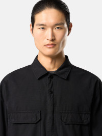 Overshirt in organic cotton ripstop featuring chest pockets with snap, adjustable snap cuffs, and a hidden two-way zipper fastening with snaps. Garment dyed. FABRIC RESEARCH AND TREATMENT Overshirt in organic cotton ripstop. Garment dyed. STYLE AND FIT Chest patch pockets with two snaps under flap. Stone Island badge on left sleeve. Tightening snap at cuffs. Back yoke. Two-way zipper fastening up to the chest, hidden under a placket with one snap on bottom and two on upper chest. Comfort fit. COMPOSITION AND CARE Garment: 100% Cotton. Lining: 100% Cotton