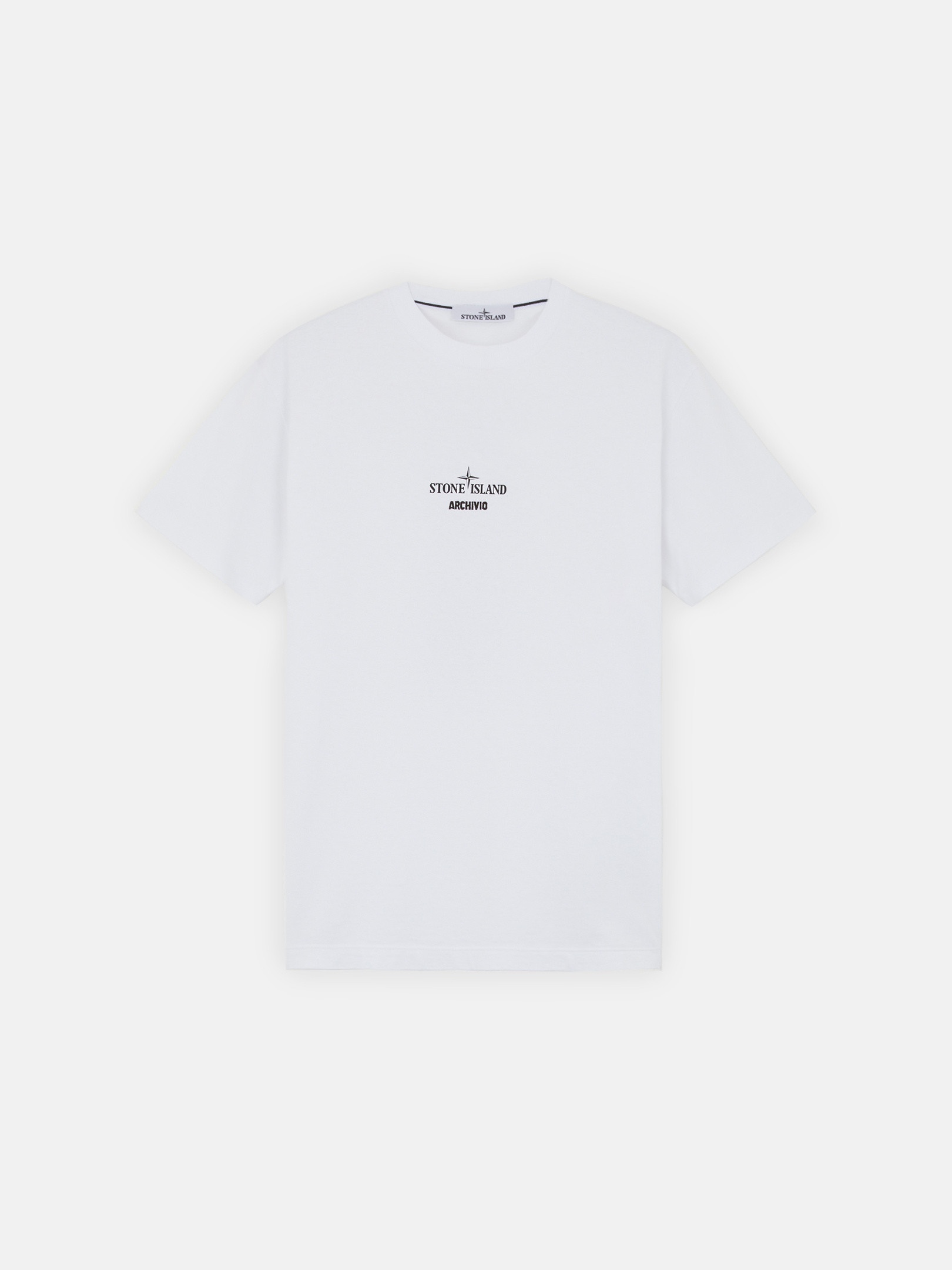 T-shirt in cotton jersey featuring 'ARCHIVIO' embroidery on the chest and a photo of the Pure Metal Shell parka from AUTUMN_WINTER ’999-‘000 on the back. FABRIC RESEARCH AND TREATMENT Short sleeve T-shirt in cotton jersey. Archivio is a project that illustrates Stone Island's textile experimentation and innovation. This method of research has been known as a lodestar in the fashion and design world for nearly forty years. Every season, a T-shirt tells the story of a fabric that has become a symbol of this passionate research. A window on the tag attached to the garment holds a sample of the fabric. STYLE AND FIT Ribbed neckline with interior tape trim with parallel stripes. ARCHIVIO embroidery on chest. Photo of the Pure Metal Shell parka from the AUTUMN_WINTER ’999-‘000 collection on the back. Slim fit. COMPOSITION AND CARE 100% Cotton