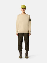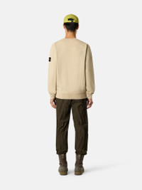 Crewneck sweatshirt in organic cotton fleece featuring overlock seams, a lunette with inner lining, and elasticated ribbed trims. Garment dyed. FABRIC RESEARCH AND TREATMENT Crewneck sweatshirt in organic cotton fleece. Garment dyed. STYLE AND FIT Ribbed neckline. Overlock seams. Stone Island badge on left sleeve. Lunette under back neckline with inner lining. Elasticated ribbed cuffs and bottom band. Regular fit. COMPOSITION AND CARE External Fabric: 100% Cotton. Ribbing: 99% Cotton 1% Elastane / Spandex