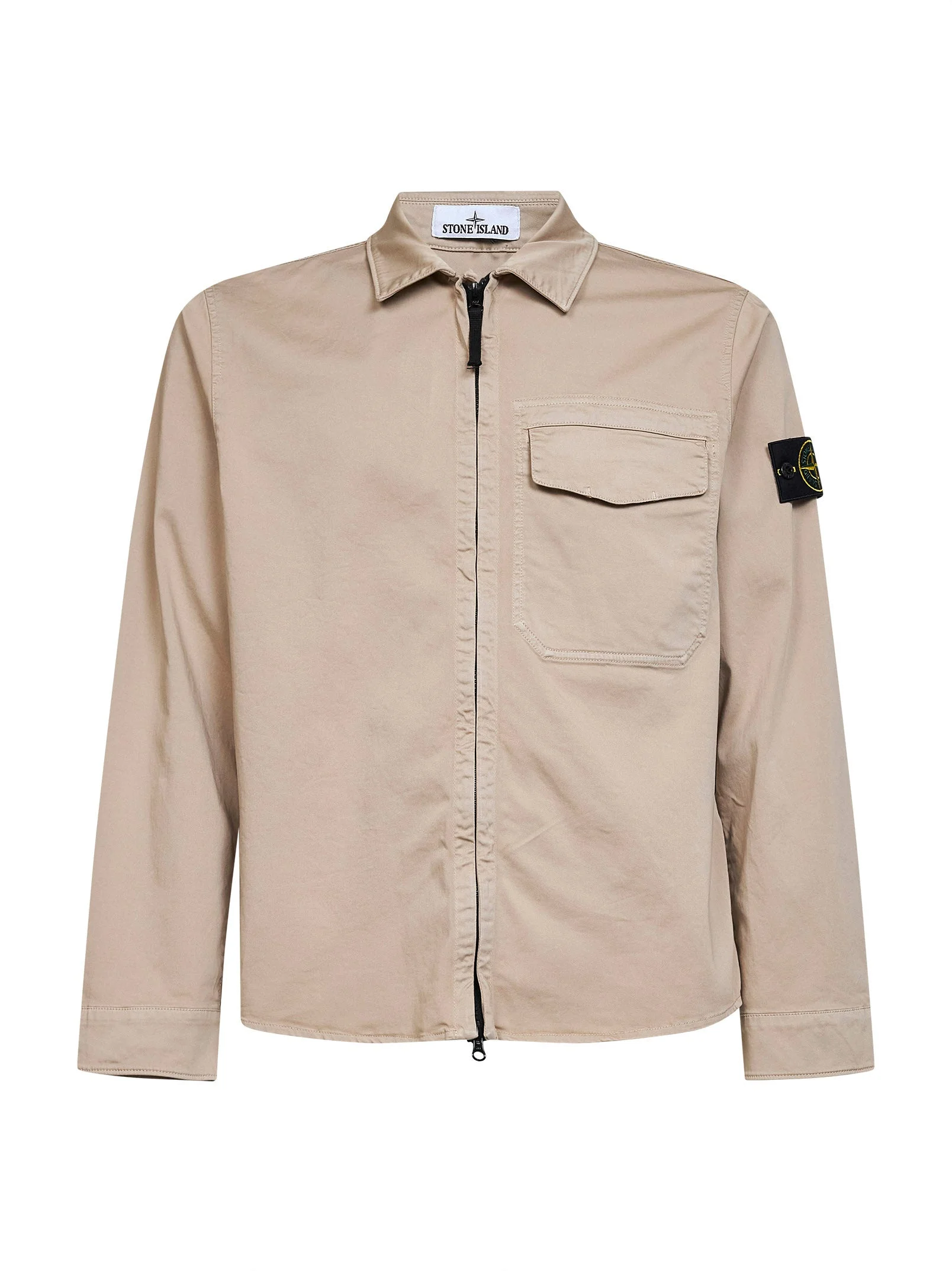 - Front double-slider zip closure - Classic collar - Long sleeves, snap-buttoned cuffs - Stone island badge at left sleeve - Patch pocket at chest with flap - Curved hem - Garment-dyed model - Regular fit - Desert color - 98% cotton, 2% elastane - Made in extra eu Natural (Veg): Cotton98 % Synthetic: Elastane2 % Made in: Tunisia Season: P26 L1S151200015S0012V009A