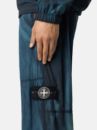 Sweatpants in performance ultra-fine denier microfiber nylon with zipper hand pockets, drawstring cuffs, and elasticated waistband. Garment dyed with corrosion treatment, making each piece unique. FABRIC RESEARCH AND TREATMENT Sweatpants made from a performance fabric using ultra-fine denier microfiber nylon yarns with a thin wind- and water-resistant coating. Garment dyed with carefully selected dyes, then faded through an innovative corrosion treatment, reflecting Stone Island’s ongoing commitment to research and experimentation. The corroded areas take on a worn appearance and varying colors due to the irregularity of the treatment, creating a blurred effect and making each piece unique. STYLE AND FIT Standing hand pockets with zipper. White Stone Island research badge on left leg. Drawstring in cuffs. Elasticated waistband with internal drawstring. Zipper fly. Loose fit. COMPOSITION AND CARE External Fabric: 89% Polyamide / Nylon 11% Elastane / Spandex. Coating: 100% Polyurethanic Resin. Lining: 100% Polyamide / Nylon