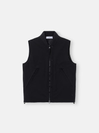 Vest in a two-ply performance material with 8000 MM water column, padded with PrimaLoft® Gold P.U.R.E™, featuring zipper pockets and a two-way zipper. Treated with anti-drop. FABRIC RESEARCH AND TREATMENT Vest in a two-ply performance material with an 8000 MM water column. The recycled polyester stretch canvas outer face is woven with yarns using the e.dye® Waterless Color System™ technology, the innovative yarn color saturation system. The fabric is laminated to a breathable, wind- and water-resistant membrane. The material structure lends great flexibility and comfort. The garment is padded with an inner layer of PrimaLoft® Gold P.U.R.E™, an exclusive 100% recycled blend of ultrasmall diameter fibers resulting in superior thermal performance. It delivers the highest warmth-to-weight ratio of all synthetic insulations. The garment is treated with an anti-drop agent. STYLE AND FIT Oversized ribbed bomber collar. Front yoke. Angled hand pockets with concealed zipper. Internal top-entry chest pocket with button and Compass logo embroidery. Stone Island badge on bottom left side. Shaping dart at back armhole. Two-way zipper fastening with internal snap placket. COMPOSITION AND CARE External Fabric: 92% Polyester 8% Elastane / Spandex Membrane: 100% Polyurethanic Resin Ribbing: 98% Polyester 2% Elastane / Spandex Lining: 100% Polyester Padding: 100% Polyester