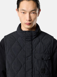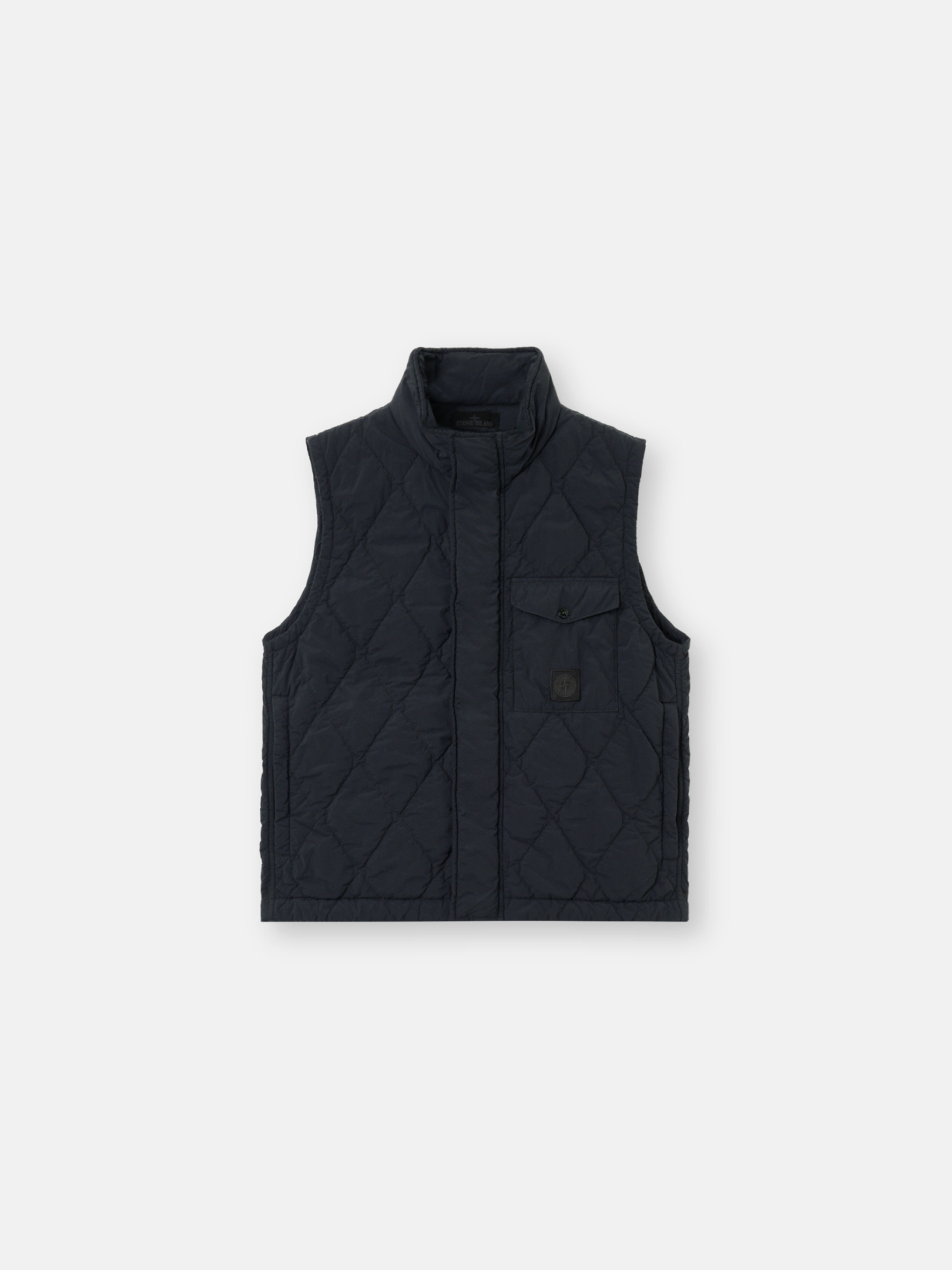Vest made from a special nylon tela, brushed to achieve a soft hand, featuring multiple pockets and padded with PrimaLoft®-TC. Garment dyed with anti-drop. FABRIC RESEARCH AND TREATMENT Ghost pieces, derived from the concept of camouflage, are totally monochromatic. Vest made of a special nylon tela. Thanks to its composition and to the brushing treatment, it offers a feeling of softness and comfort similar to cotton but with the durability and resistance specific to nylon fibers. Padded with PrimaLoft®-TC, an exclusive blend of high-performance insulating fibers, 70% recycled, engineered with STONE ISLAND for garment dyeing. Garment dyed with the addition of a special anti-drop agent. STYLE AND FIT Standing collar. One patch chest pocket with flap and snap fastening, featuring the Stone Island Compass patch logo. On-seam hand pockets with hidden zipper fastening. Yoke on back. Drawstring in bottom hem. Hidden two-way zipper and snap fastening. COMPOSITION AND CARE External Fabric: 100% Polyamide / Nylon. Lining: 100% Polyamide / Nylon. Padding: 100% Polyester
