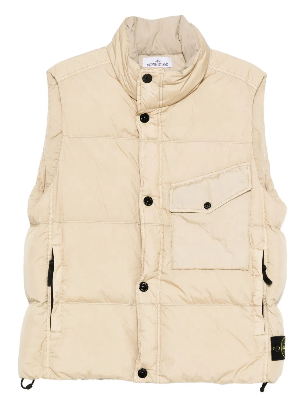 Compass-badge gilet Highlights - Light beige - Front press-stud and zip fastening - Two side zip-fastening pockets - High neck - Drawstring hem Imported Composition Outer: Polyamide 100%, Polyurethane Resin 100% Lining: Polyamide 100% SIZE & FIT Model measurements Height 6 ft 1 in(1.85 m) Bust/Chest 38.58 in(98 cm) Hips 37 in(94 cm) Waist 30.31 in(77 cm) Washing instructions Machine Wash
