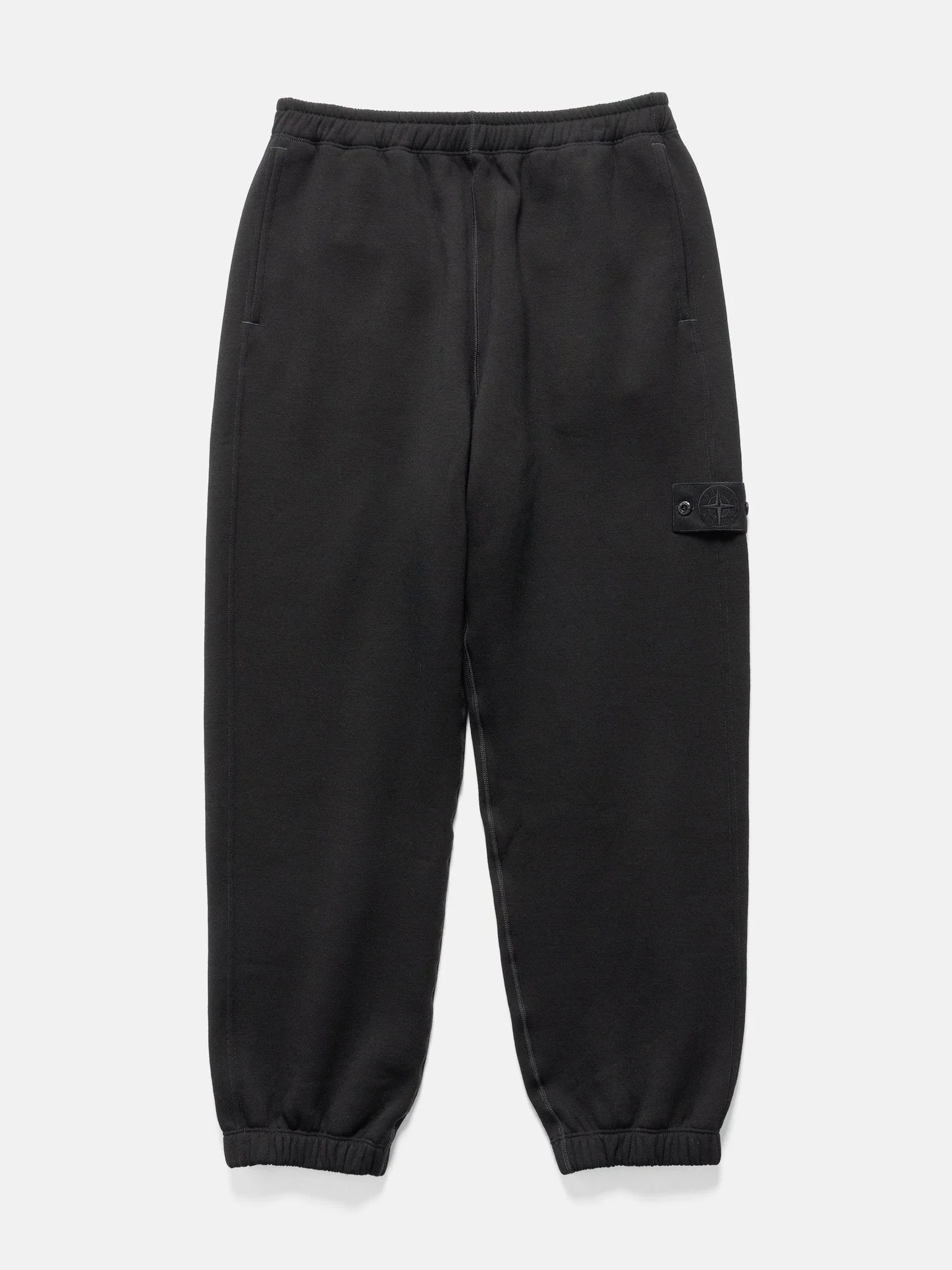 The Stone Island Ghost Piece Cotton Wool Fleece Sweatpants bring classic comfort to a refined, modern silhouette. Crafted from soft, warm cotton-wool fleece, they offer cozy all-day wear while maintaining a sleek, monochromatic Ghost aesthetic, including the tonal badge. Designed with standing hand pockets, back flap pockets with concealed snaps, and an elasticated waistband and cuffs, they balance functionality with effortless style. A versatile, elevated sweatpant perfect for relaxed everyday comfort. DETAILS - 6200009 S0F15 - 60% Wool, 40% Cotton - Relaxed fit - Inseam standing hand pockets - Welt back pockets with concealed snap - Elasticated waistband with inner drawstring - Elasticized cuffs - Stone Island Ghost badge on left leg - Made in Italy