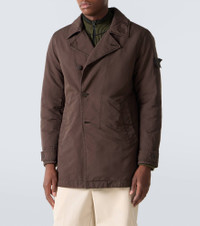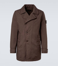 Designed with a technical fabric, the Ghost car coat by Stone Island is the perfect ally against windy, rainy days. Its style features a long, single-breasted silhouette with a buttoned front and a notched lapel, as well as a removable logo patch on the left sleeve. Product Details - Material: 70% polyester, 30% polyamide - Care instructions: machine wash at 30 degrees - Made in Romania - Designer color name: Dark Brown - Item color: brown - Lining: 100% polyamide - Filling: 100% polyester - Notched lapel - Closure: single-breasted - Pockets: snap-buttoned pockets, internal pocket - Cuff: buttoned - Vent: single - Item number: P01064049 Size & Fit - True to size - Designed for a loose fit - Non-stretchy fabric - Falls below the hip - The model in the picture is 185cm-6'1" and wearing a size L