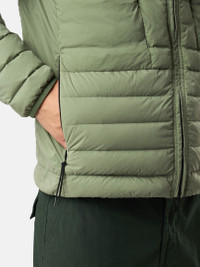 Down jacket in a single layer of light stretch nylon with seamless tunnels for improved feather hold, featuring a padded hood and invisible zipper pockets. Garment dyed with anti-drop. FABRIC RESEARCH AND TREATMENT Hooded down jacket in a light single layer stretch fabric made with 86% recycled nylon that undergoes a special weaving technique automatically creating the feather compartments directly from the loom. The seamless feather tunnels substantially increase the hold of the down. The finished garment is padded with direct injection with the finest feathers, specifically treated to resist garment dyeing. Garment dyed with the addition of a special anti-drop agent. RDS - Responsible Down Standard certified. STYLE AND FIT Padded hood with elasticated tape trim. Standing chest pockets and hand pockets with invisible zipper. Flat back yoke. Stone Island badge on left sleeve. Elasticated tape trim at cuffs. Drawcord at hem. Hidden two-way zipper fastening with one snap on inner placket. COMPOSITION AND CARE External Fabric: 86% Polyamide / Nylon 14% Elastane / Spandex. Hood: 87% Polyamide / Nylon 13% Elastane / Spandex. Lining: 86% Polyamide / Nylon 14% Elastane / Spandex. Hood Lining: 87% Polyamide / Nylon 13% Elastane / Spandex. Garment Padding: Duck Down (Minimum 90% Down) 90% Duck Down 10% Duck Feather. Contains Non-textile Parts Of Animal Origin